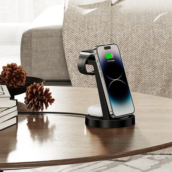3 in 1 Charging Station for iPhone, Wireless Charger for iPhone 17 16e 16 15 14 13 12 11 X Pro Max & Apple Watch - Wireless Charging Station for AirPods 4 3 Pro